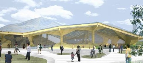 The US$22.8 million Norway Pavilion will not be constructed from scratch, but assembled using prefabricated laminated wood building kits and bamboo which will be shipped from Norway.
